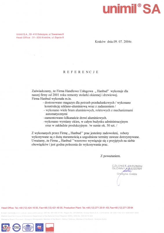 Hanbud to rodzinna firma z Krakowa, która od 1999 roku specjalizuje się w sprzedaży i montażu stolarki budowlanej oraz wyposażenia posesji. Naszą misją od początku było dostarczanie niezawodnych produktów oraz kompleksowej obsługi – od doradztwa technicznego, przez sprzedaż, aż po fachowy montaż i serwis.